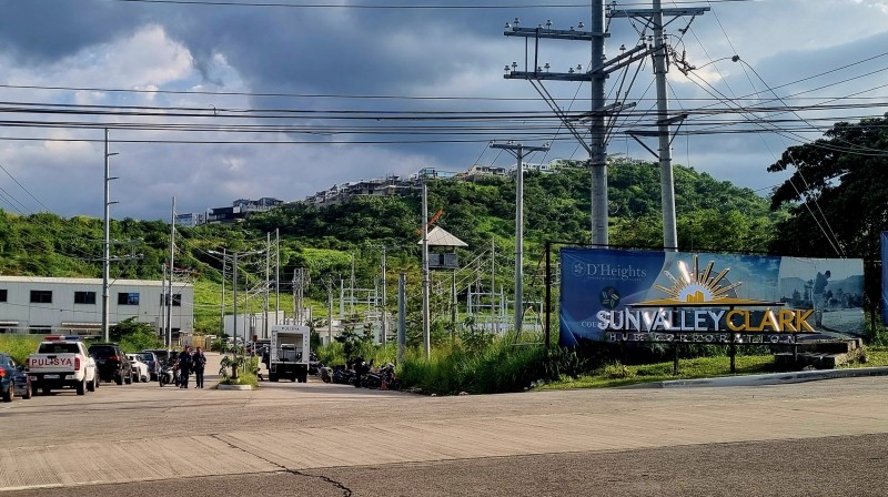 Philippine police at the Sun Valley compound, where Wang Dingkai’s company is located, on May 5, 2023.